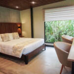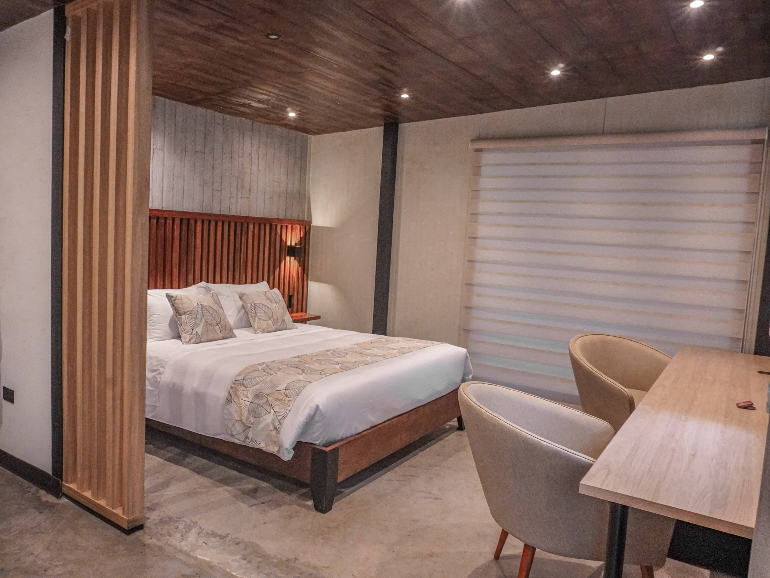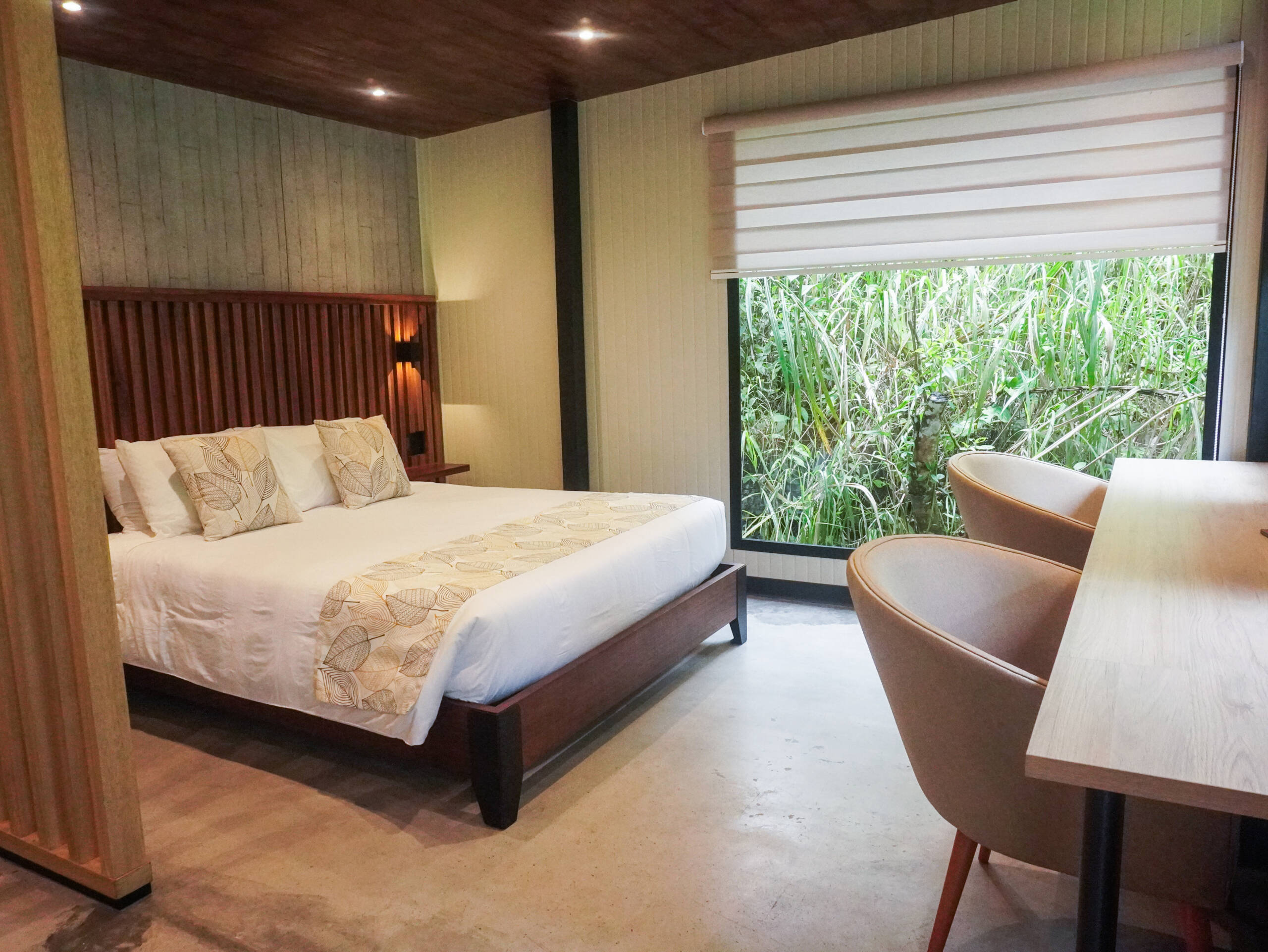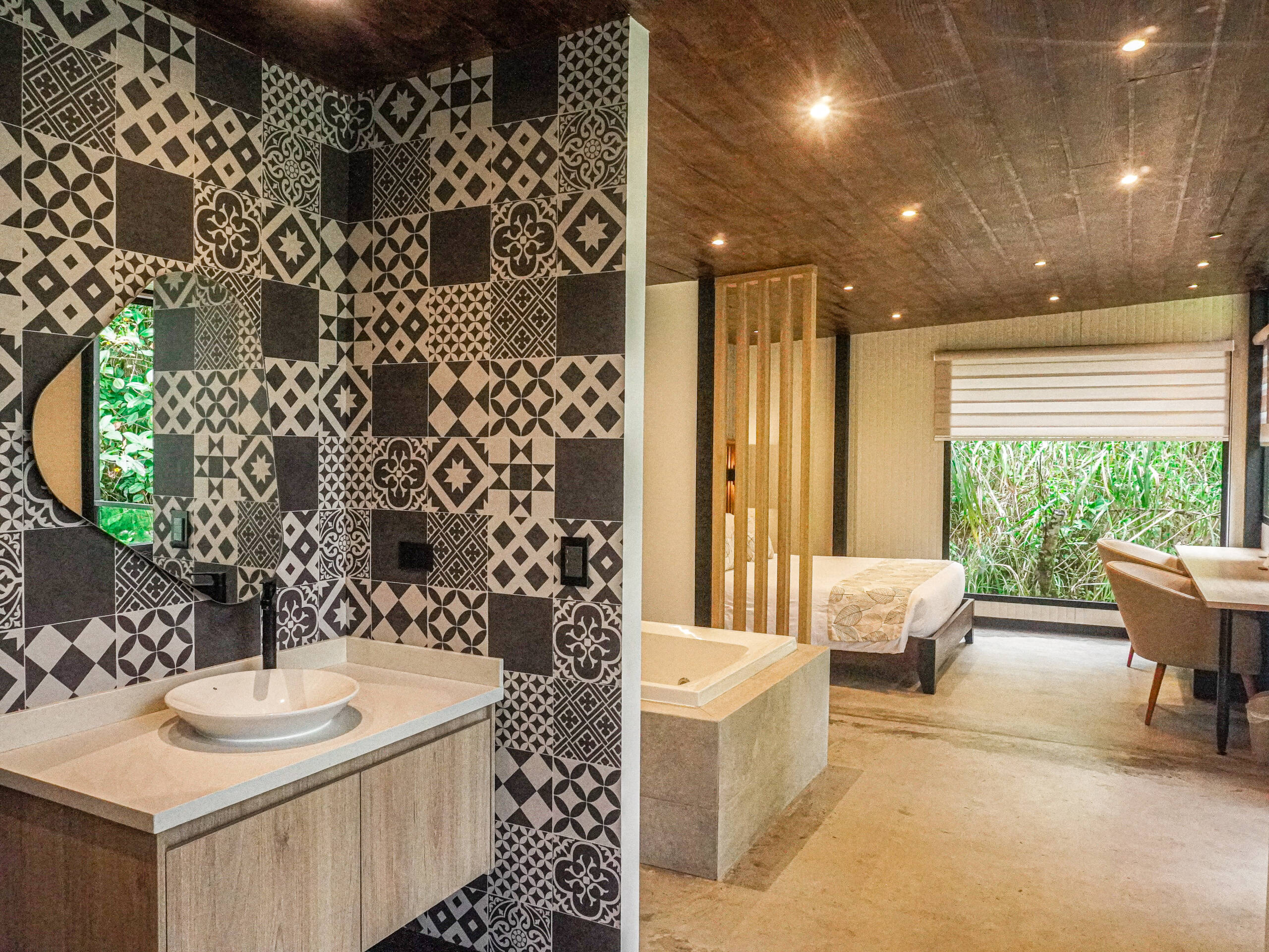 Descubre el lujo en nuestras suites, donde la elegancia se fusiona con el confort. Sumérgete en el lujo de una bañera, relájate en el jacuzzi, descansa en la cama queen o el sofá cama, y disfruta de entretenimiento en la televisión. Todo esto, complementado con una terraza exterior que ofrece una espectacular vista a la naturaleza. ¡Tu escapada perfecta te espera con servicios que deleitarán todos tus sentidos!